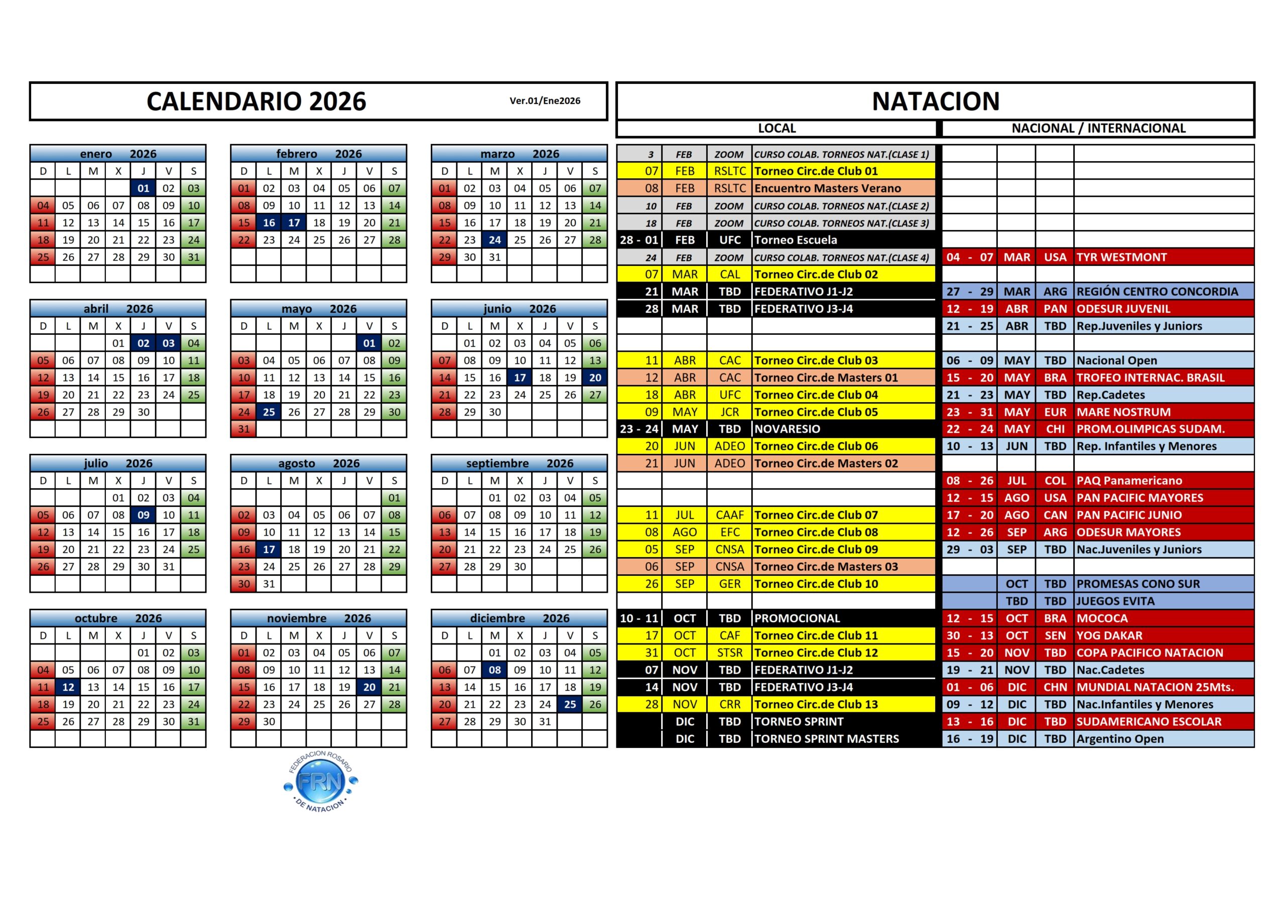 Calendario Natación 2026